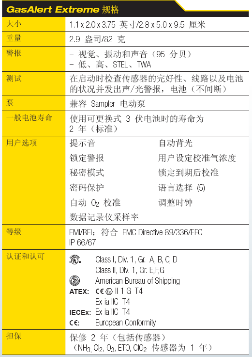GasAlert Extreme 的其它特點(diǎn)包括: