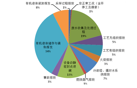 煉油與石油化工行業(yè)VOCs排放量各源項占比